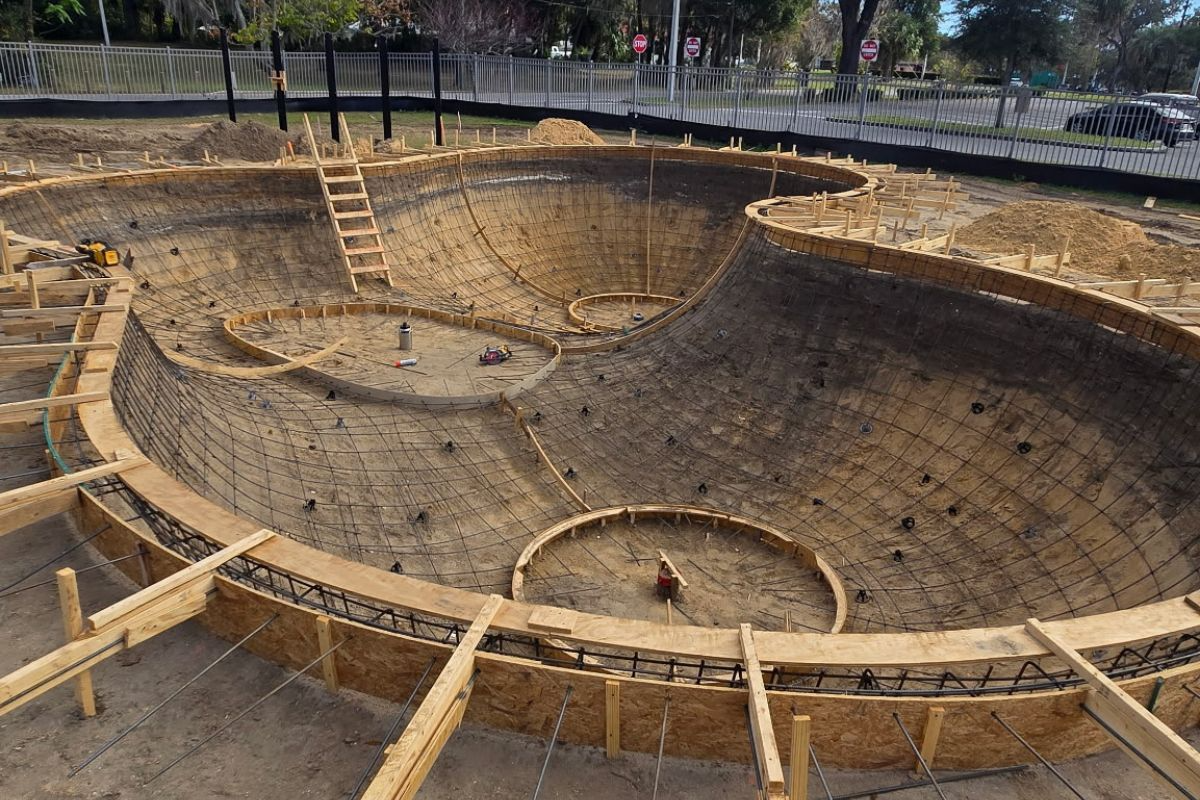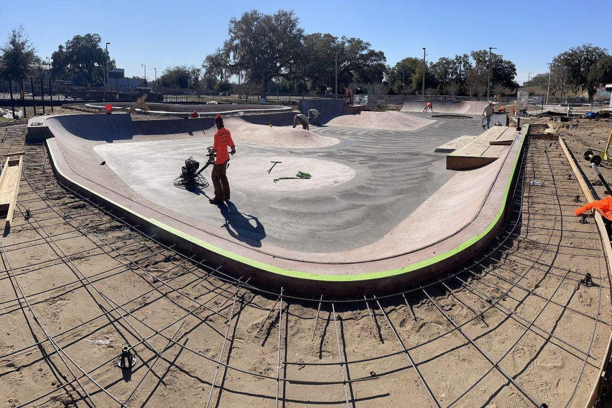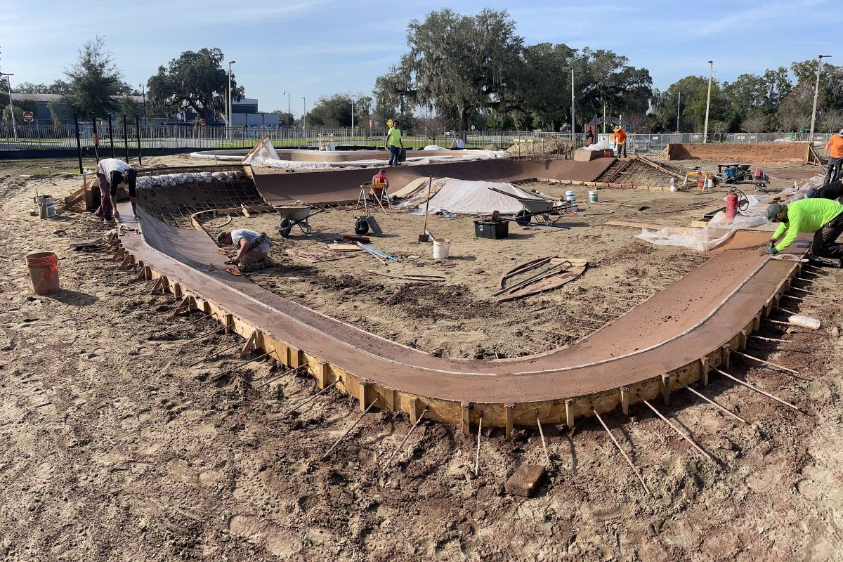 With the design approved and all the paperwork filed, the crew gets down to business. The expansion of the Ocala Skatepark will add a snake run, a large bowl, a smaller bowl, and a 4,000 sf low-impact street course. We look forward to welcoming the community to the Grand Opening on March 28th and seeing riders of all ages enjoy what the new additions have to offer.