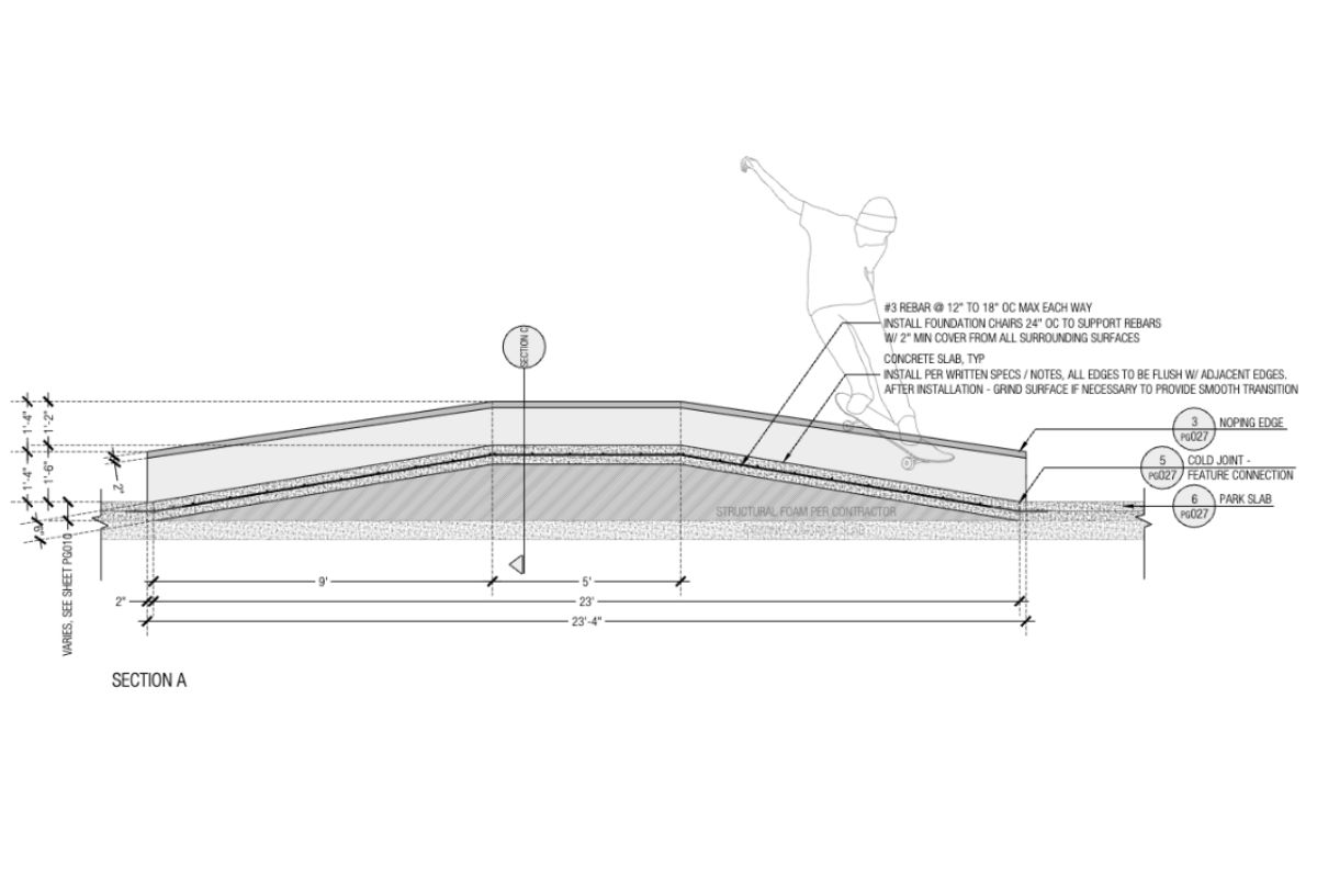 We began working on this project in 2020, when longtime friend and Front Rock Concrete owner, Kyle Berard, hit up Platform for some assistance with a design and CDs. This narrow, Santa Ana alley was formerly used for shipping and a dumpster. The design required a compact, efficient layout. That left the challenge of including all of the right obstacles, but leaving enough room to not feel cramped. Once the CDs we finalized, the permitting phase was a long road. But when the developer was finally ready, Kyle and crew jumped in for the build and made the right on-site adjustments to bring it all to life. What was once an overlooked alley, is now a vibrant and functional skate spot, with something for every skill level.
